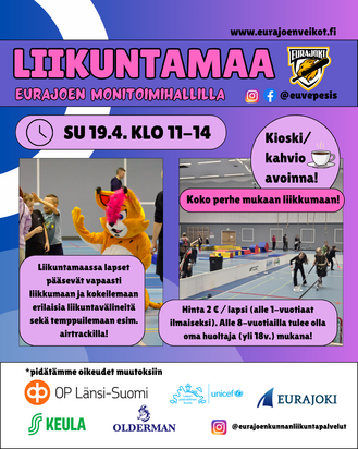 EURAJOEN VEIKOTon vuonna 1932 perustettu urheiluseura Eurajoelta. Seuralla on nykyisin toimintaa monipuolisesti eri liikuntalajien muodossa, esim. pesäpallossa, salibandyssä, yleisurheilussa, hiihdossa ja suunnistuksessa.