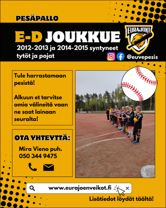 Mukaan mahtuvat kaikki 2012-2013 ja 2014-2015 syntyneet tytöt ja pojat!